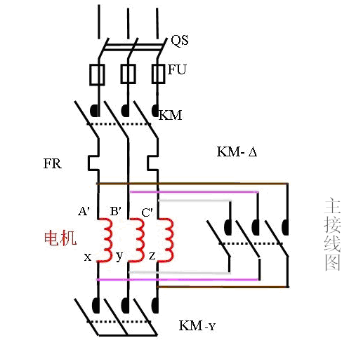 可以看到通過Y--△,能夠實現降壓啟動,降壓起動時的電流為直接啟動時的1/3,起動轉矩為角接起動轉矩的1/3,適用于空載起動或者輕載起動的場合。