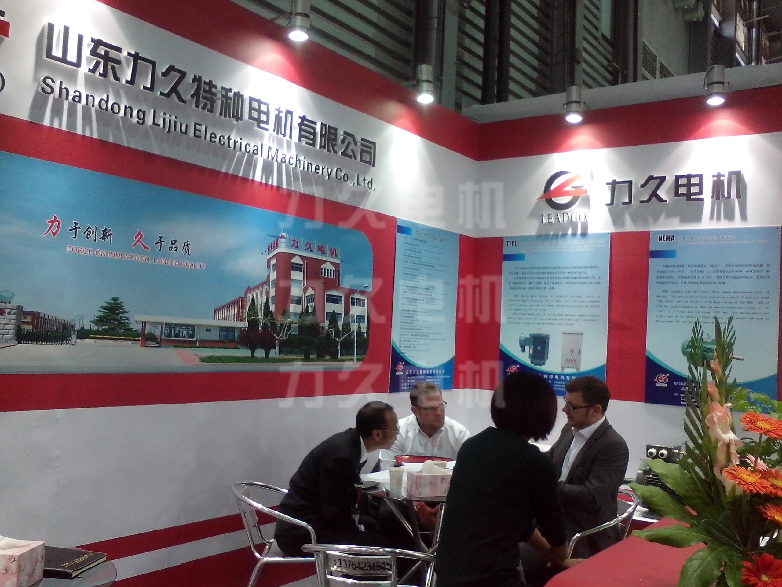 此次展會,很多國外客商參觀了我公司的展位,客商對力久公司的高效電機、高效節能電機很感興趣,詳細了解了我公司的產品及我公司情況,為我公司積累了大量的潛在客戶。(圖為外國客商在詳細咨詢我公司產品)