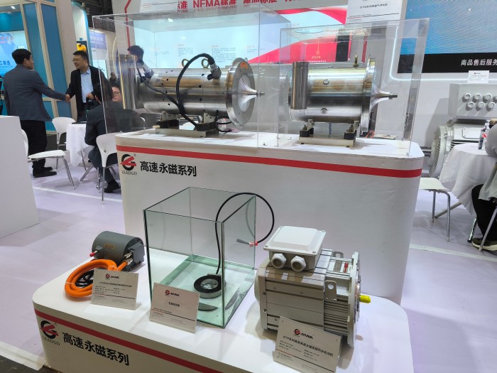 024年11月5日上海亞洲國際動力傳動與控制技術展覽會(PTC ASIA)如期舉行。作為動力傳動行業國際盛會,PTC展會現場匯聚了眾多國際性的知名企業。山東力久特種電機股份有限公司作為此次展會參展商之一,以精益求精的態度,精心準備展會每一處細節,旨在為客戶帶來更優質的交流體驗。現場力久電機展出了NEMA系列電機、防爆系列電機、IEC系列電機、低壓大功率系列電機、高壓系列電機、TYP系列等多個電動機展品,受到廣泛關注。展會現場使用控制系統啟動展示高速永磁系列的磁浮電機和氣浮電機,更是吸引眾多參觀者駐足咨詢。