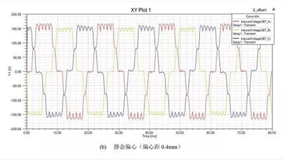 當電機發生靜偏心故障時,電機的對稱結構遭到破壞,各個探測線圈下的氣隙長度將變得各不相同,各個探測線圈下的氣隙磁通也將發生變化。靠近氣隙長度減少的一側的探測線圈氣隙磁通將增大,而靠近氣隙長度增大的一側的探測線圈氣隙磁通將減小。這必然導致各探測線圈中的感應電壓幅值的不同,可以根據各線圈電壓幅值的大小,判斷電機是否發生靜偏心故障。